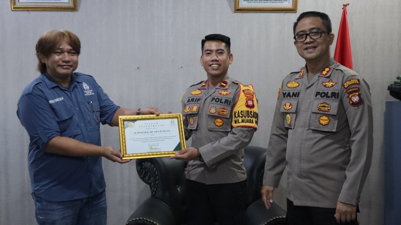 “ Piagam ini kami sampaikan kepada Bapak Kapolres Ketapang AKBP Yani Permana, atas dedikasi beliau dalam memberikan pembinaan, masukan dan arahan kepada pihak kami dalam upaya pelestarian lingkungan serta pencegahan potensi kebakaran hutan dan lahan selama setahun ini ” Ujar F Wendi Tamariska.