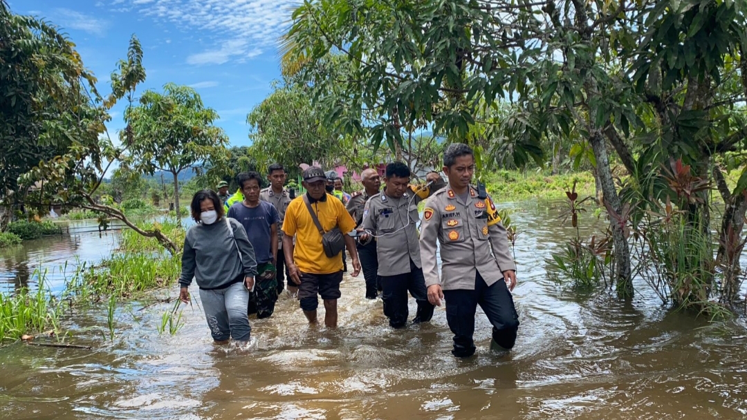 Sebagai bentuk kepedulian terhadap sesama, Kapolres tidak tanggung-tanggung terjun langsung kelokasi banjir dengan seragam dinasnya beserta dengan yang lainnya.