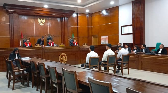 Para terdakwa didampingi penasehat hukum masing-masing, terdakwa Tegar Rafi Sanjaya Atmaja, dari LBH Mawar Saron, Sihombing, dan penasehat hukum terdakwa Kadek dan Terdakwa Farhan yaitu Noldy Sulu SH. Butet