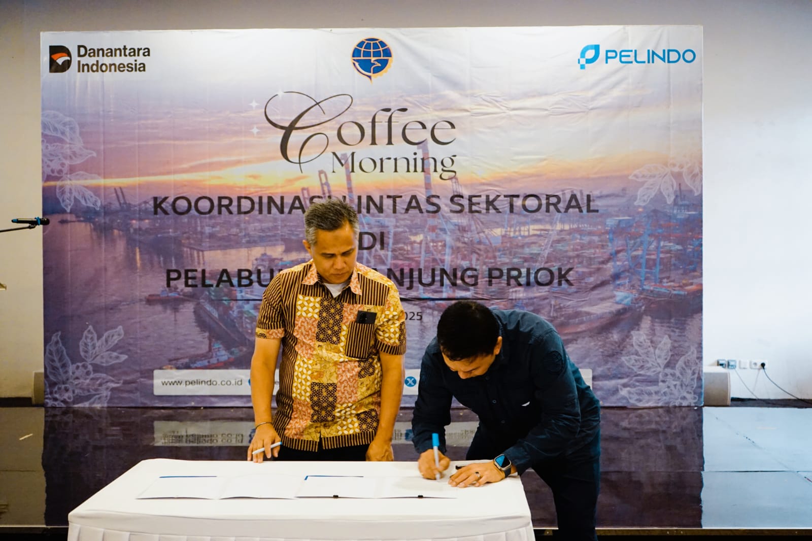 Agar komitmen Bersama bisa terlaksana, dilakukan Penandatanganan Berita Acara Kesepakatan bersama Tentang Larangan Kendaraan Bermotor Roda Dua yang Masuk Melalui Gate In pos 9 dan pos 1 Pelabuhan Tanjung Priok. Penandatanganan yang dilaksanakan pada saat Coffee Morning tersebut di ikuti oleh seluruh Stakeholder Pelabuhan Tanjung Priok yang hadir di Museum Maritim Pelabuhan.
