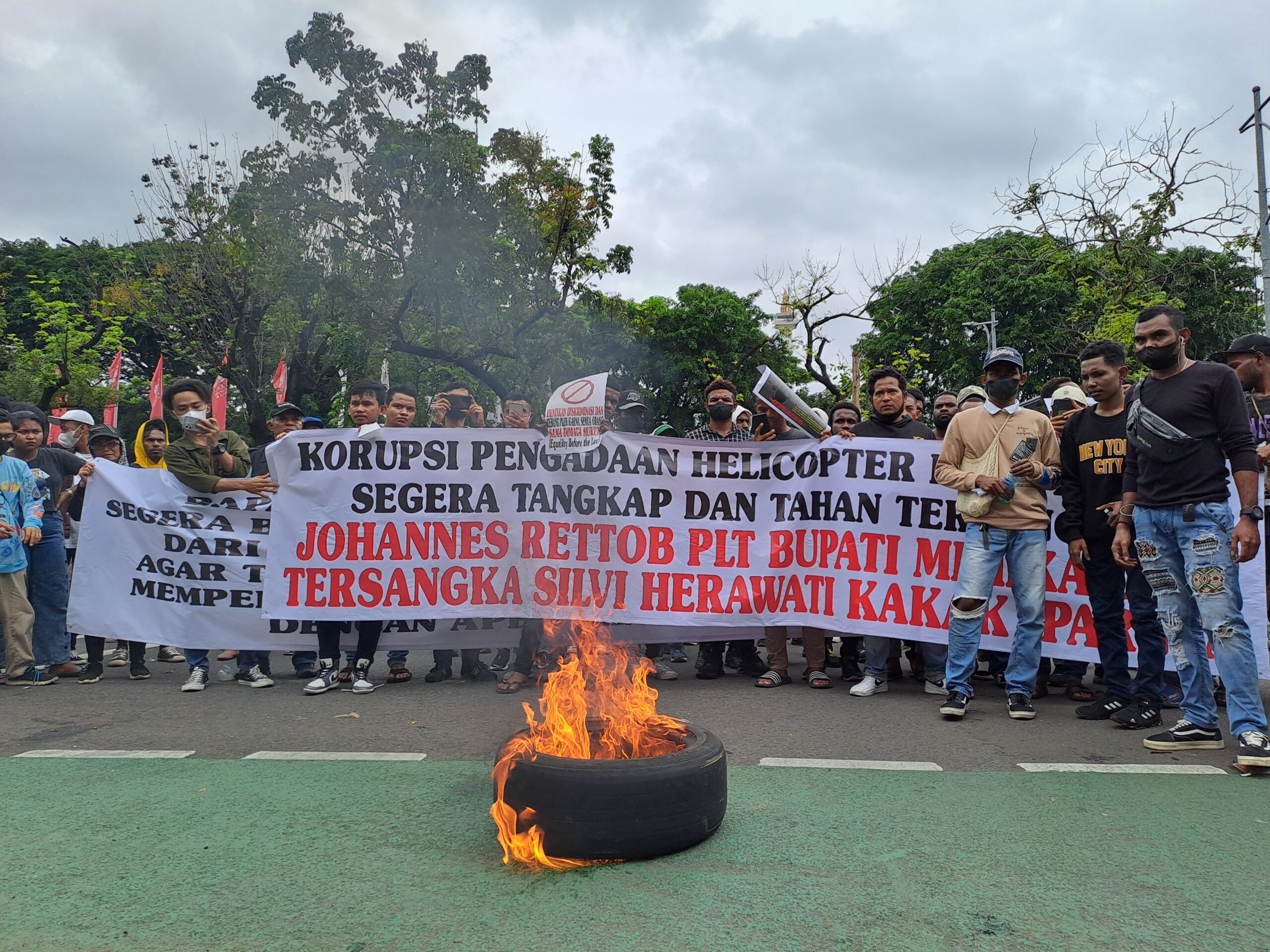 “Kami meminta agar Bapak Mendagri Prof Tito Karnavian segera mencopot dan memberhentikan secara tidak hormat. Plt Bupati Mimika yang sudah ditetapkan sebagai tersangka dalam kasus pengadaan Pesawat dan Helikopter yang merugikan dan menggunakan anggaran pemerintah daerah Mimika sebesar seratus dua puluh tiga miliar pada tahun 2015. Dimana saat ini yang bersangkutan sudah ditetapkan sebagai tersangka oleh Kejaksaan Tinggi Papua dalam kasus korupsi tersebut,” jelas Michael.