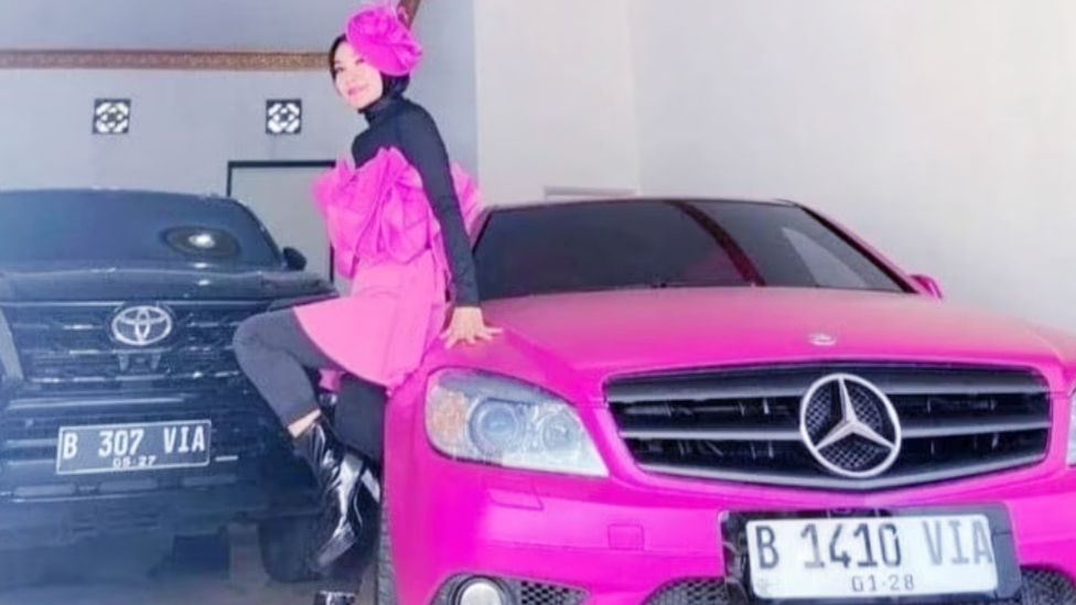 Istri Esha juga sempat mengunggah foto dirinya dengan mobil BMW warna pink terang berpelat “B 1410 VIA” dan di sampingnya masih ada mobil Toyota Fortuner dengan pelat “B 307 VIA”.